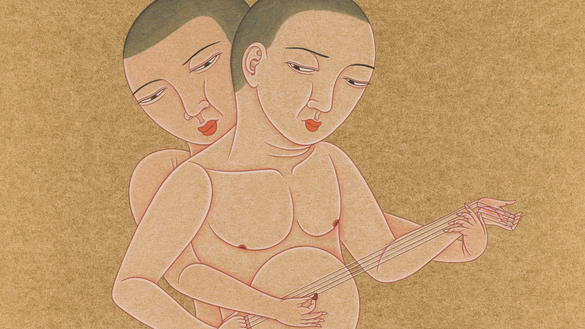 Image: Musical Bodies: Banjo, 1999. By Wilson Shieh (Chinese, 1970).Ink and color on gold paper. Gift of the Yiqingzhai Collection, 2005.77. © Asian Art Museum.